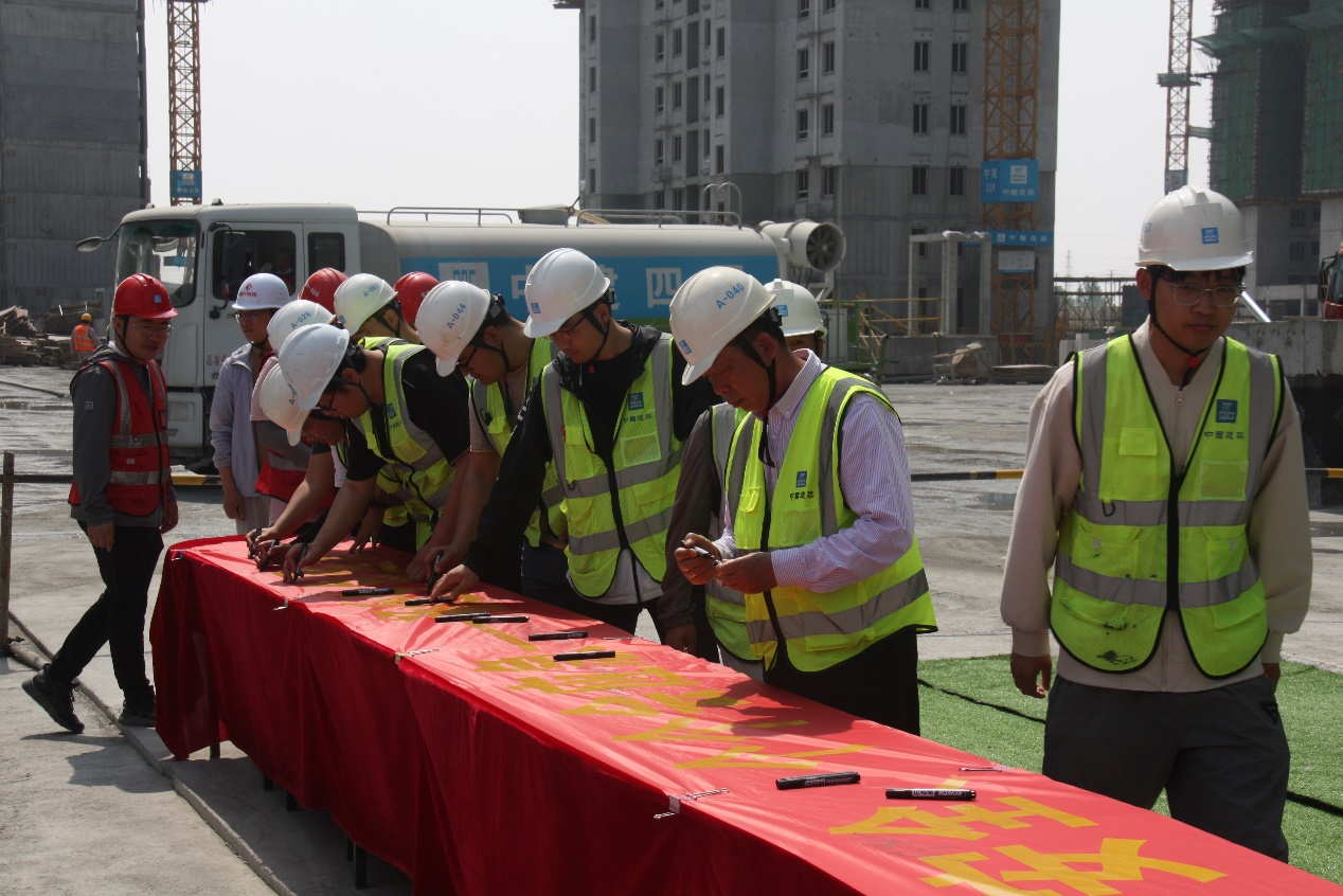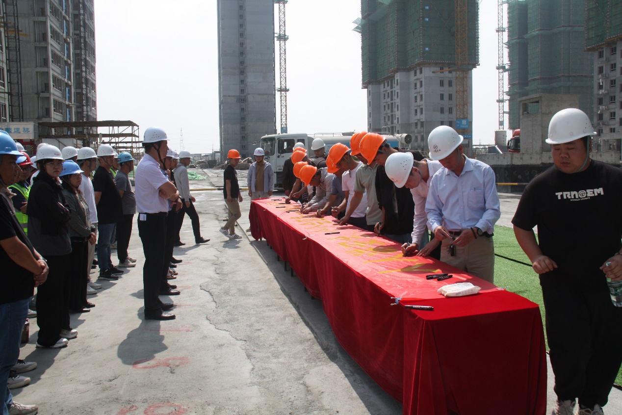 活動現(xiàn)場,集團領(lǐng)導(dǎo)班子全體成員,各部門及子公司負責(zé)人,質(zhì)安部、工程部全體人員,各在建項目經(jīng)理、監(jiān)理及工人代表參加儀式。